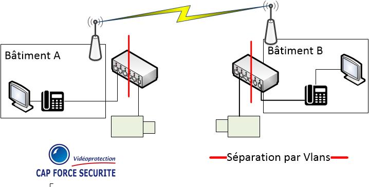 Il est tout à fait possible de segmenter les switchs (Vlans en niveau II) pour profiter du raccordement d’une caméra sur l’un de vos bâtiments pour dédier une partie de ce réseau au bâtiment.